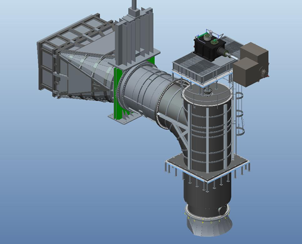 水泵采用臥式電機(jī)驅(qū)動(dòng),通過(guò)角齒輪箱減速并與水泵連接。水泵的軸向推力由齒輪箱承受。泵吸入口采用飛力開發(fā)的FSI以獲取平穩(wěn)的來(lái)流條件。泵出水管上設(shè)置爬梯和防護(hù)欄以便于巡檢人員巡視。