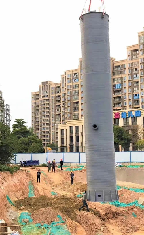 泵站筒體采用高模量聚丙烯HMPP環(huán)保材質(zhì),兩次纏繞成型,筒壁采用三層夾心管結(jié)構(gòu),纏繞及注塑等復(fù)雜工藝制作而成,不僅擁有良好的力學(xué)性能,而且材質(zhì)環(huán)保、無(wú)毒、無(wú)味、強(qiáng)度高,可進(jìn)行二次回收利用。
