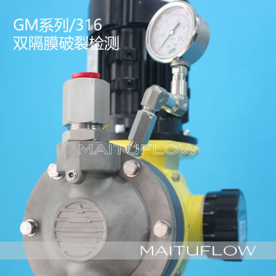 計量泵的出、入口分別裝有高精度的單向止回閥,閥體具有獨特的導(dǎo)向設(shè)計。 隔膜檢漏報警技術(shù)—-保證輸送危險性物料過程的安全: