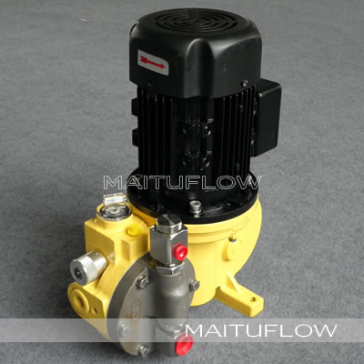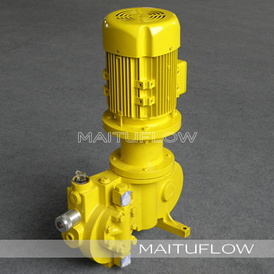 mRoy系列A&B型計(jì)量泵,是專門為持續(xù)化學(xué)藥劑投加工況而設(shè)計(jì)的液壓驅(qū)動(dòng)隔膜正排量泵。泵設(shè)計(jì)有柱塞,以一定的行程作往復(fù)運(yùn)動(dòng),推動(dòng)一定體積的液壓液體,流體作用到有彈性的化學(xué)性能穩(wěn)定的PTFE隔膜上,從而產(chǎn)生泵的輸送過(guò)程。