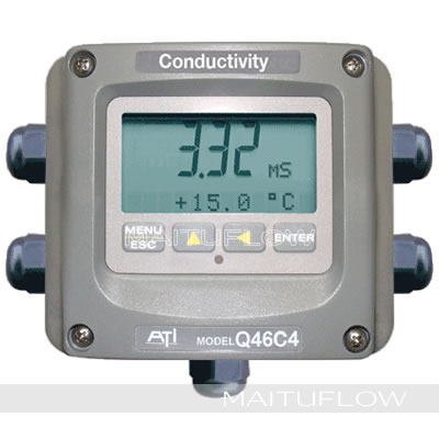 雖然電導(dǎo)測量原理很簡單,但在實際應(yīng)用中往往很復(fù)雜。簡單的雙電極傳感器雖然價格便宜,但是只適用于很清潔干凈的水 體測量,如果水中污染物呈粘性物質(zhì)較多時,會粘附在傳感器表面,帶來測量精度的降低。因此雙電極傳感器就不能滿足這種應(yīng)用要求了。ATI的Q45C4-4電極電導(dǎo)測量儀能適用于幾乎所有的水基溶液的電導(dǎo)測量,包括飲用水、工業(yè)循環(huán)水、電鍍水、工業(yè)生產(chǎn)水。4電極傳感器采用獨特的驅(qū)動控制方式,使傳感器的測量范圍可從0-200ms到0-2000ms(2s),其自動分程特征可以根據(jù)水中電導(dǎo)的實際值選擇相應(yīng)的量程范圍,對于一些化學(xué)溶液應(yīng)用場合可以選擇濃度測量顯示來測量溶液的濃度。