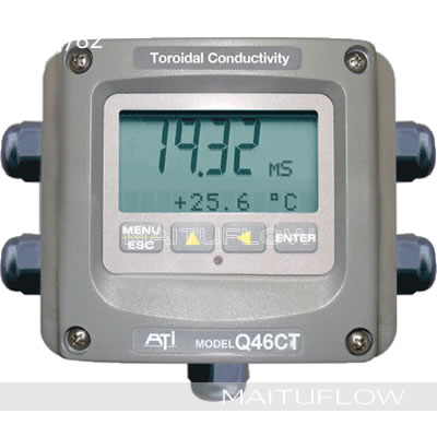 ATI的Q45CT電導(dǎo)儀是在線監(jiān)測(cè)具有腐蝕性化學(xué)成份溶液電導(dǎo)的理想儀器。傳感器采用感應(yīng)式環(huán)形無(wú)電極式探頭,內(nèi)部包括兩個(gè)金屬線圈。其一為驅(qū)動(dòng)線圈,產(chǎn)生勵(lì)磁電流;另一個(gè)為感應(yīng)線圈,形成測(cè)量電流,此測(cè)量電流與溶液電導(dǎo)率成正比。