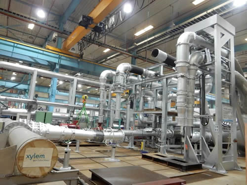 雙吸泵測(cè)試能力范圍:該測(cè)試站有一個(gè)16,000加侖(63m^3) 的密閉罐,附有DN80、DN150、DN300、DN600&600 的測(cè)試管道,測(cè)試流量的范圍是 135 to 13,500 m^3/Hr,測(cè)試壓力范是 10-365 PSI (2.5 MPa),測(cè)試品種,1610泵、VSC和VSX泵、MP泵、HSC泵等符合流量、壓力范圍內(nèi)的其他產(chǎn)品.